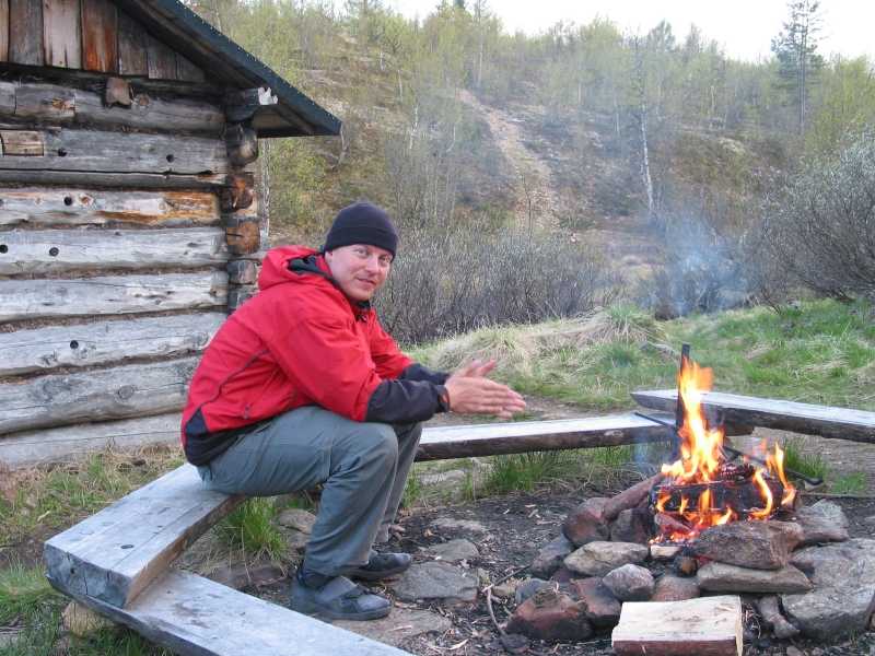 Antti lämmittelee nuotin äärellä.